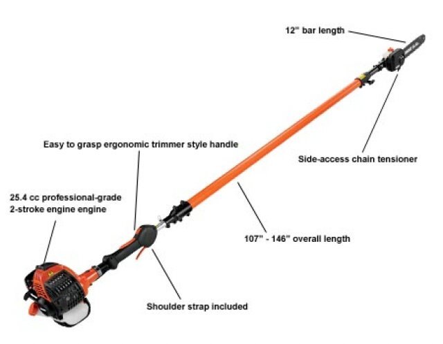 ECHO Power Powers provide extra long reach for fast, easy and safe tree pruning in those hard-to-get-at applications. Available in either fixed length or telescoping configurations, a Power Pruner can provide a reach of over 12 feet depending on the model (over 16 feet with an optional 4 foot extension) allowing for safe pruning while keeping your feet on the ground. The light-weight design and comfortable controls ensure maximum operator comfort. A new, heavy-duty gearbox features dual-sealed bearings, spiral cut steel gears and a manual grease port for maximum lubrication, durability and cutting performance. An adjustable oiler delivers the right amount of oil, every time, for exceptional chain lubrication. The chain tensioning system improves cutting performance and extends bar and chain life. ECHO Power Pruners deliver commercial-grade performance and optimum tree care versatility. There is also a wide range of complementary Accessories and Parts available |