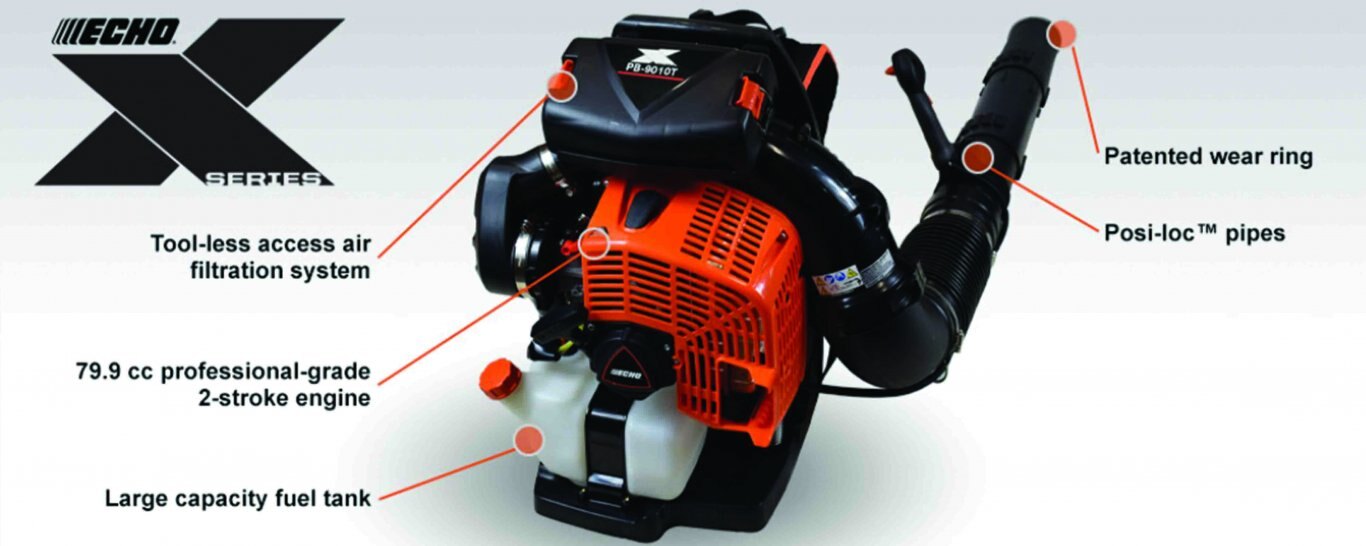 ECHO Blowers…Powerful, Productive, and Quiet.An ECHO Leaf Blower will make quick work of any yard clean-up. The line-up of Power Leaf Blowers, designed in both handheld and backpack configurations, features many operator-friendly features like ProFire® ignitions for quick and easy starts, padded backrests and shoulder straps, Posi-loc™ tubes for secure pipe connections, and comfortable handles with “cruise control". ECHO's backpack blowers are available in either tube-mounted or hip-mounted throttles. And with the most certified low noise blowers available (65 dB(A)), ECHO blowers will perform in noise-sensitive environments. To read more on this subject, please visit the Leaf Blower Noise website. And to learn just how loud is loud - check out our blower infographic. MPH or CFM? Some manufacturers only publish the speed (MPH) at which their blowers blow and not necessarily how much air it moves (CFM). Be sure to check for both values. ECHO yard blowers feature both the ability to move debris (MPH) and keep it moving (CFM); this combination of high speed and high volume air output combine to create a blower that will perform the job and be comfortable to operate. There is a wide range of complementary Accessories and Parts available for your power blower. |