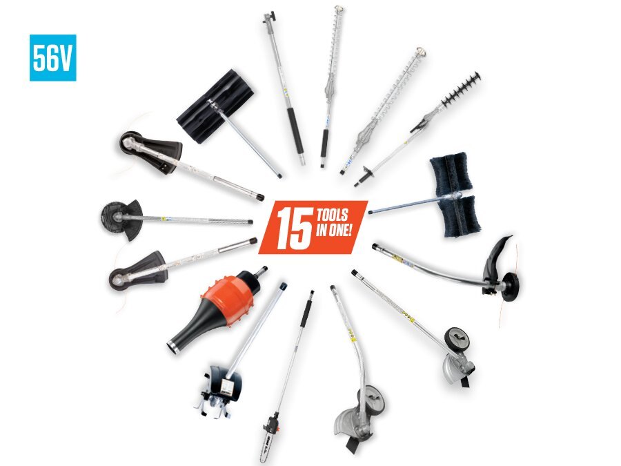 The ECHO Battery System 56V DPAS-2100C1 is the perfect all-in-one solution for homeowners. Being able to utilize one power head with 15 different attachments adds versatility while keeping the overall need for dedicated tools low. Now available as stand-alone powerhead with 2.5Ah battery and standard charger.