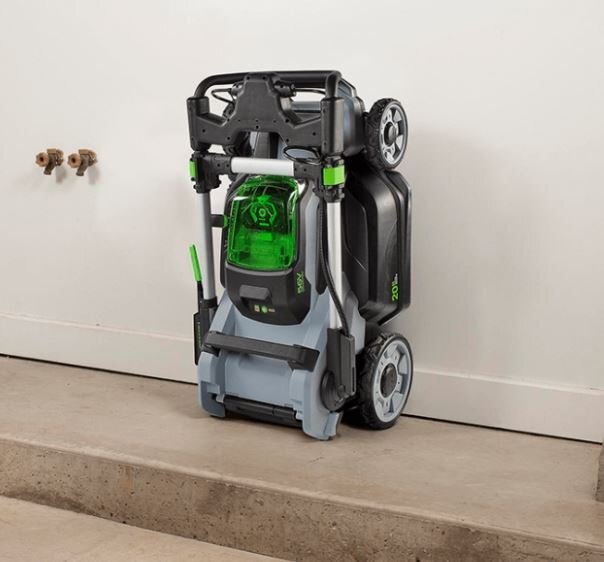 The EGO POWER+ Mower makes 30% less noise than a gas powered mower and the compact, foldable design makes storing and cleaning the mower more convenient than any other. |