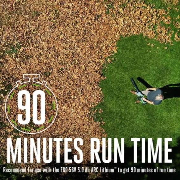 90 MINUTE RUN TIMEWith the 5.0 Ah 56V ARC Lithium™ Battery get up to 90 minutes of run time. |