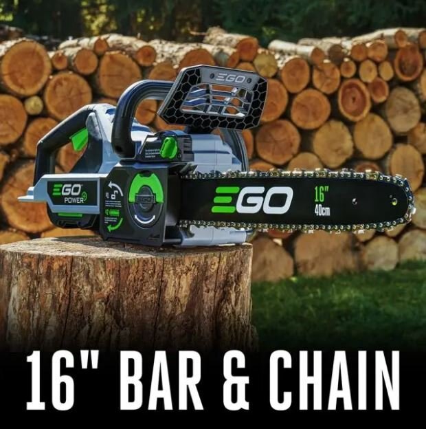 The EGO POWER+ 16" Chain Saw truly delivers Power Beyond Belief™ with the equivalent of 40CC gas power and 20 m/s chain speed. |