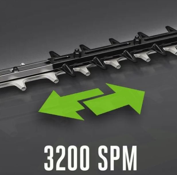 DETAILSThe EGO POWER+ 25” Hedge Trimmer has a high-efficiency brushless motor which allows for longer run time, low vibrations and extended tool life. The 25" dual action, laser cut steel blades allow precise, clean cuts. The trimmer is also equipped with fully serviceable blades to make sharpening quick and easy. The 180-degree rotating handles offers ultimate control in challenging conditions. Delivering up to 3,200 strokes per minute to get the tough jobs done faster. Compatible with all EGO POWER+ ARC Lithium™ batteries to deliver Power Beyond Belief™. |