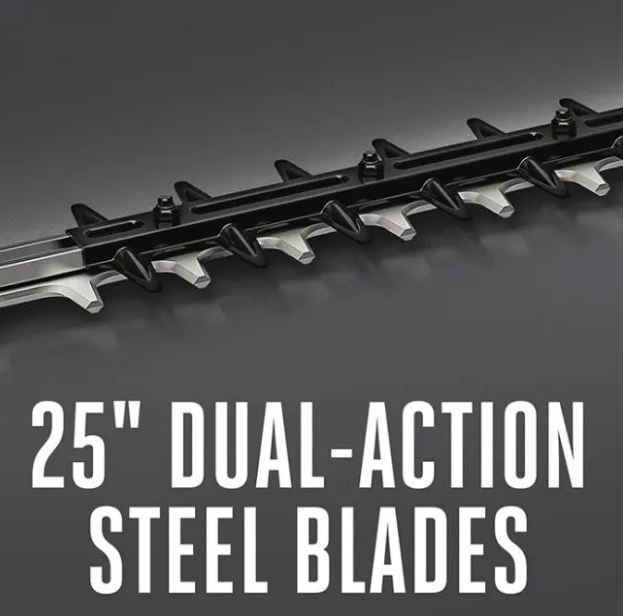 DUAL-ACTION LASER CUT STEEL BLADES25” dual-action, laser cut steel blades for precise, clean cuts |