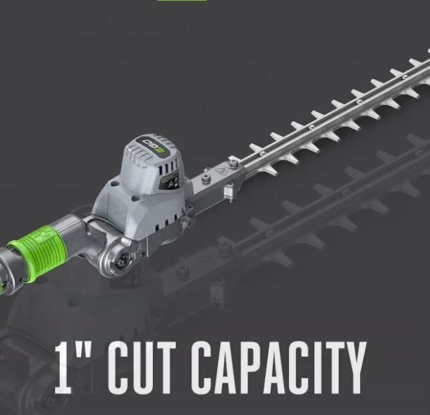 DETAILSThe EGO POWER+ Commercial Pole Hedge Attachment is designed to be used exclusively with the Commercial Telescopic Power Pole system. The 22” Pole Hedge Attachment has double-sided, laser cut steel blades to ensure durability and longevity against the all-day conditions met by professionals. The Commercial Pole Hedge Attachment lasts up to 2 hours (with the recommended 5.0Ah 56V ARC Lithium™ battery). The 1” cut capacity combined with up to 3000 SPM work together to get tough jobs done faster. The high-efficiency brushless motor allows for longer run time, low vibrations, and extended tool life. A 6-position articulation and 90-degree rotatable head allow you to cut from any angle to power through a wide range of applications. Experience Power Beyond Belief™ with the EGO POWER+ Commercial Pole Hedge Attachment. . |