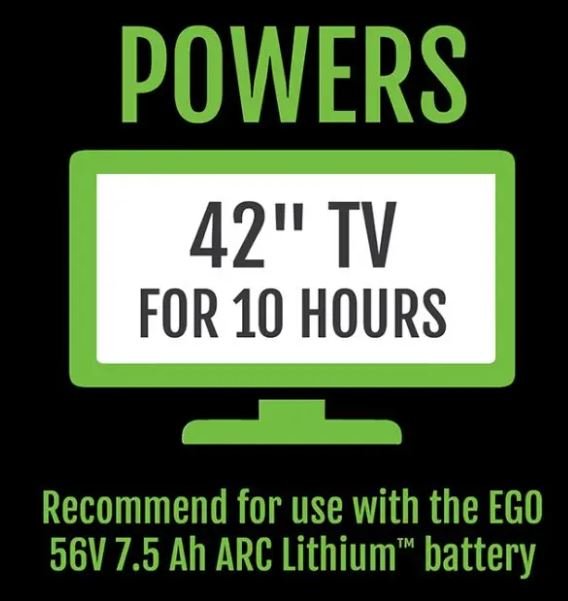 POWER WHEN YOU WANT ITUse indoors and outdoors.The Escape can even be used to power a TV. When used with a 7.5 Ah ARC Lithium™ battery you can power a 42 in. TV for up to 10 hours |