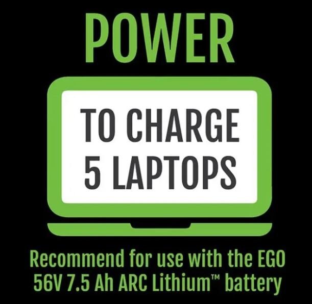 Built tough with a 120V AC power outlet & 2 USB ports. Use any EGO battery to power the Escape. Battery sold separately. |