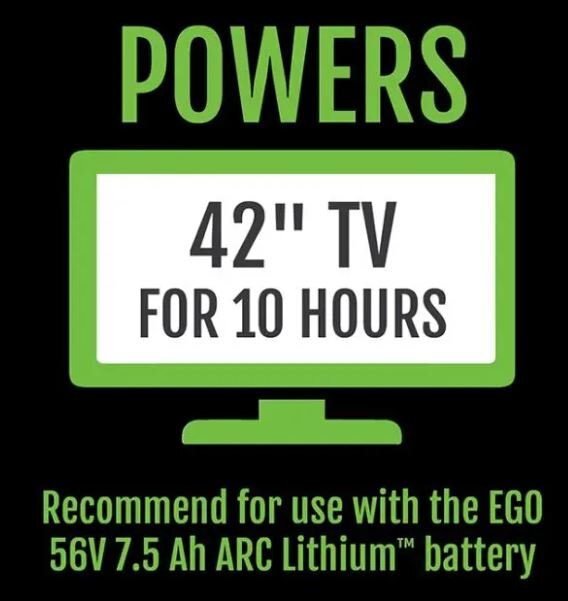 DETAILSIntroducing the Nexus Escape. Power when you want it, power when you need it. Built tough with a 120-Volt AC power outlet to power anything from a tablet while out and about, your lamps in the house, even your TV in a power outage. Compatible with all EGO POWER+ ARC Lithium™ batteries (available separately) to deliver Power Beyond Belief™. |