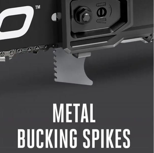 • Metal Bucking Spikes minimize kickback for safety