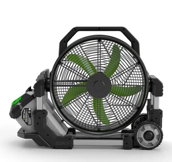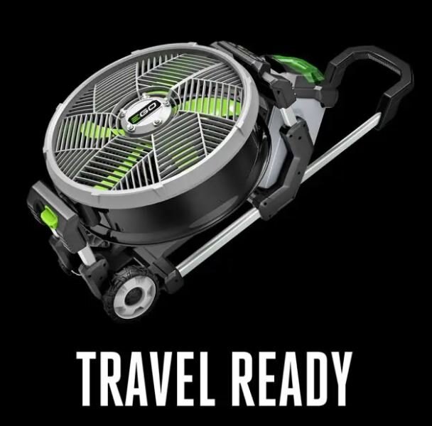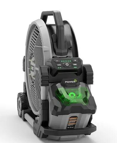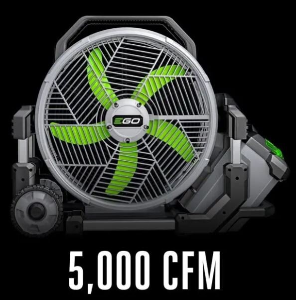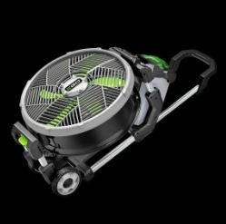 DETAILSIntroducing the EGO POWER+ 18” Misting Fan, the world’s most powerful cordless misting fan. With air speeds of over 20MPH, this fan has double the airflow of a standard 20” box fan. 5 different speed settings allow you to adjust air flow to your liking from 1,500CFM to 5,000CFM for ultimate control. With its telescopic handle and durable wheels, take advantage of superior portability. Bring the POWER+ 18” Misting fan to sporting events, tailgates, beach days, patio hangouts, and more! Ideal for cooling down indoor and outdoor environments with quiet operations of just 42dB on speed 1. Simply drop the intake filter in a bucket and select from 2 misting modes to cool down an area equivalent to a large entertainment patio (540 square feet). Stay cool longer with up to 60 hours of run time (on speed 1 with the recommended 5.0Ah ARC Lithium™ battery, available separately). Compatible with all EGO POWER+ ARC Lithium™ batteries (available separately) to deliver Power Beyond Belief™. |