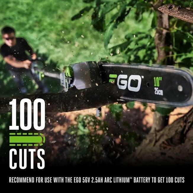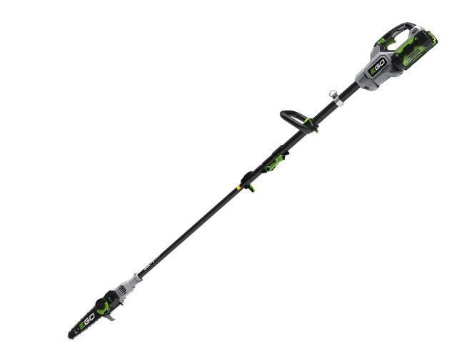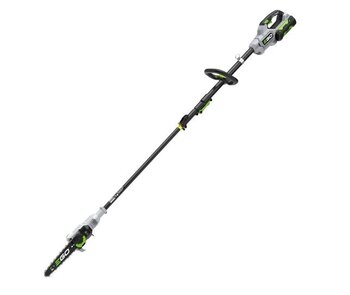 DETAILSThe EGO POWER+ 10” Pole Saw introduces an industry-first LED Cut Line Indicator for improved visibility and better accuracy when working under dark, shaded canopies and low light conditions.Its telescopic carbon fiber shaft extends for a total reach up to 13 feet (or 17 feet with EP1000 extension pole, sold separately) while maintaining best-in-class weight up to 30 percent lighter than other pole saws for tree trimming. Tool-free tensioning provides fast, precise chain tensioning so you can get back to work faster. This cordless pole saw makes up to 100 cuts on a single charge with the included 56V 2.5Ah ARC Lithium™ battery. The electric pole saw features a high-efficiency brushless motor that delivers long runtimes, low vibrations, and an extended motor life. Its 10-inch bar and ¼-inch chain delivers smooth, precise cuts with chain speeds up to 20 m/s. The pole saw features a quick-adjust handle for ultimate control along with a shoulder strap and strap hook for added comfort. |