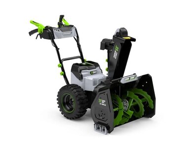 DETAILSThe EGO POWER+ 28 In. Self-Propelled 2-Stage Snow Blower with Peak Power™ exceeds the power and performance of gas without the noise, fuss, and fumes. Featuring Peak Power+ technology, EGO’s most powerful cordless snow blower combines the power of any two EGO 56V ARC Lithium™ batteries with a steel auger, a 28-inch clearing width, and 21-inch clearing height to churn through the absolute worst winter can unleash on you—and throws it up to 60 feet away. Its 2-in-1 electronic chute adjustment delivers effortless control of the 200-degree chute direction and deflection so you can throw snow where you need it for efficient snow removal. This 28-inch two-stage snow blower features heated handle grips to help keep your hands warm in the coldest, snowiest conditions while trigger-controlled steering assists with turning the machine for added control. Clear up to a 32-car driveway with 8 inches of snow on a single charge with two 12.0Ah ARC Lithium™ batteries. |