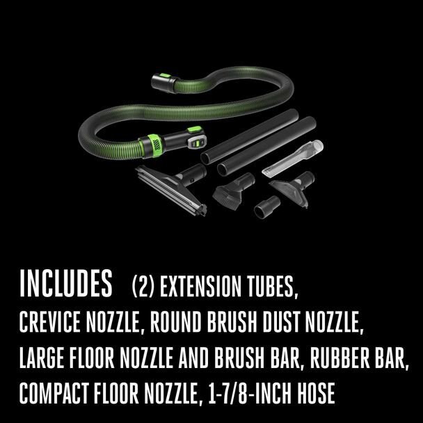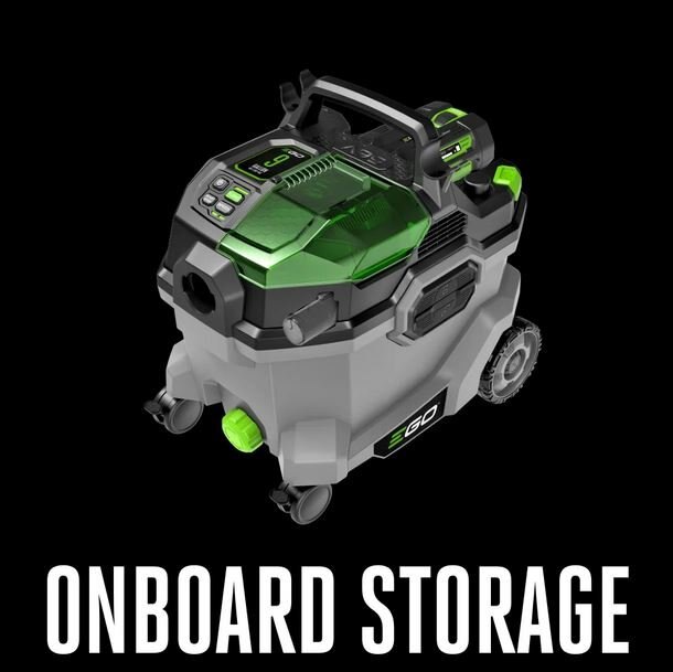 The EGO POWER+ 9 Gallon Wet/Dry Vacuum delivers up to 110CFM of powerful suction for 100-inch water lift and features convenient onboard storage for its included nozzles, extensions, and hose. |