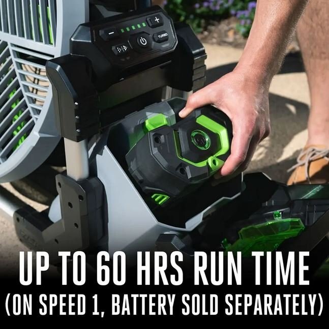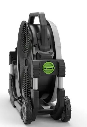 Details Introducing the EGO POWER+ 18” Misting Fan, the world’s most powerful cordless misting fan. With air speeds of over 20MPH, this fan has double the airflow of a standard 20” box fan. 5 different speed settings allow you to adjust air flow to your liking from 1,500CFM to 5,000CFM for ultimate control. With its telescopic handle and durable wheels, take advantage of superior portability. Bring the POWER+ 18” Misting fan to sporting events, tailgates, beach days, patio hangouts, and more! Ideal for cooling down indoor and outdoor environments with quiet operations of just 42dB on speed 1. Simply drop the intake filter in a bucket and select from 2 misting modes to cool down an area equivalent to a large entertainment patio (540 square feet). Stay cool longer with up to 60 hours of run time (on speed 1 with the recommended 5.0Ah ARC Lithium™ battery, available separately). Compatible with all EGO POWER+ ARC Lithium™ batteries (available separately) to deliver Power Beyond Belief™. |
