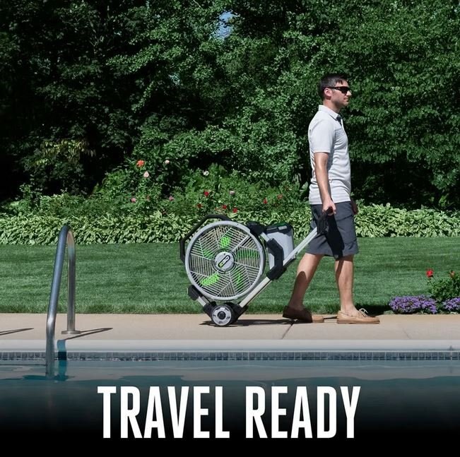 | Introducing the EGO POWER+ 18” Misting Fan, the world’s most powerful cordless misting fan. With air speeds of over 20MPH, this fan has double the airflow of a standard 20” box fan. |