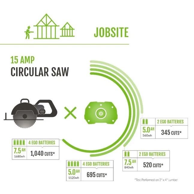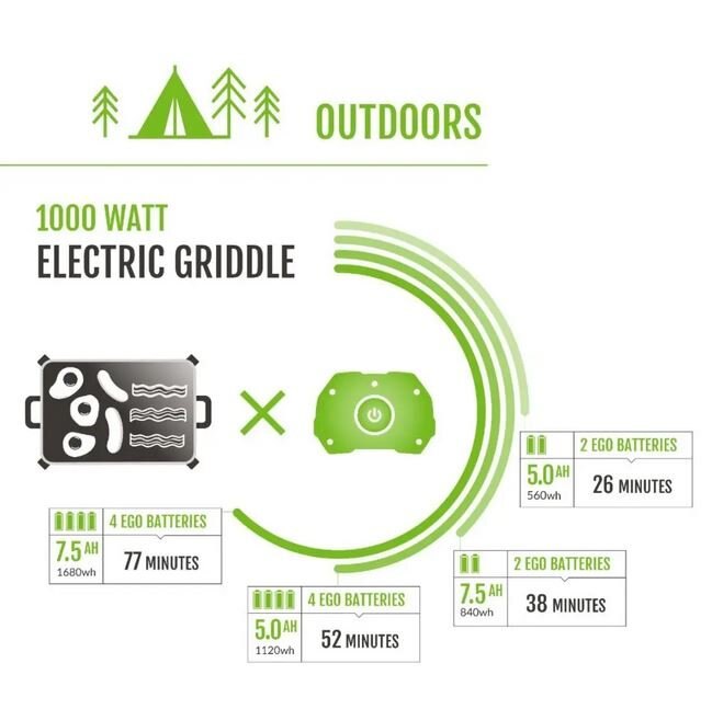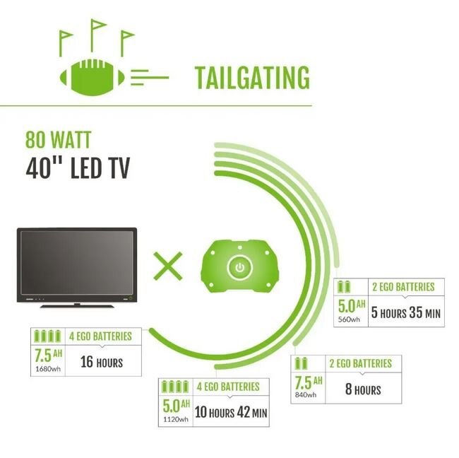 The EGO Nexus Power Station is a battery-powered alternative to gas generators that delivers clean, quiet, portable power. It’s safe to use indoors and out, so the possibilities are endless. Bring it to your next tailgate party to power a slow cooker or griddle. When the electricity goes out, use it to power a TV, microwave, and full-sized refrigerators. Bring it on your next camping trip to plug in lights, fans, induction cook tops and play music. Recommended kit includes the portable power station and (2) 7.5Ah ARC Lithium™ batteries. With the EGO Nexus Power Station, you now have power when you want it, power when you need it.