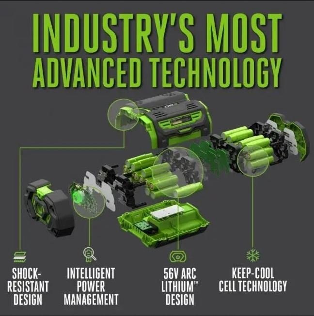 The EGO POWER+ 56-Volt 12.0Ah battery uses industry-leading ARC Lithium™ technology to deliver Power Beyond Belief™ and is compatible with all EGO outdoor power equipment. |