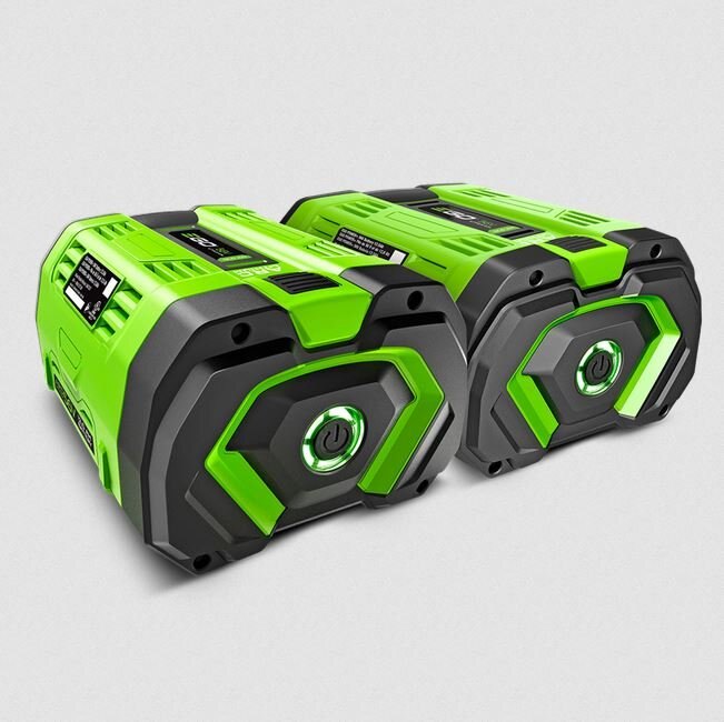 Details The EGO 56V 2 x 12.0Ah ARC Lithium™ Battery uses industry-leading technology to deliver Power Beyond Belief™. Its patented ARC Lithium™ design keeps the battery from overheating by pushing heat away so your equipment runs longer at full power. Its durable, shock-resistant design protects batteries from drops and the elements. Intelligent power management monitors and optimizes each individual battery cell to maximize power, performance, and runtime. Each 12.0Ah battery features a fuel gauge with built-in indicator lights that show how much runtime is remaining in 20 percent increments. Each 12.0Ah battery fully charges in 75 minutes with the EGO POWER+ Turbo Charger (CH7000), 90 minutes with the Rapid Charger (CH5500), 160 minutes with the 320W Charger (CH3200), and 230 minutes with the Standard Charger (CH2100). Two 12.0Ah batteries will fully charge in 180 minutes with the EGO Power+ Dual-Port Charger (CH2800D). With the industry’s most advanced battery technology, every EGO tool delivers or exceeds the power and performance of gas without the noise, fuss, or fumes. |