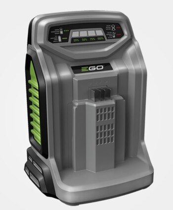Details The EGO POWER+ Rapid Charger features an intelligent battery control system that monitors each cell’s charge and temperature to deliver the quickest, most efficient charge. Its active cooling fan system and advanced communication with the battery supports rapid charging without overheating for maximum battery life. Its rapid recharging capability ensures limited downtime with any EGO 56V ARC Lithium™ battery. It has an integrated fuel gauge that shows five charge levels in 20 percent increments. From zero, it can fully charge a 2.5Ah battery in as little as 30 minutes, 4.0Ah in 30 minutes, 5.0Ah in 40 minutes, 6.0Ah in 45 minutes, 7.5Ah in 60 minutes, 10.0Ah in 70 minutes, and 12.0Ah in 90 minutes (all charge times are approximate). The EGO POWER+ Rapid Charger charges all EGO POWER+ 56V ARC Lithium™ batteries. |
