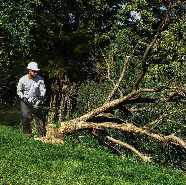 | With chain speeds up to 30 m/s for all-day work felling trees and powering through stumps and large branches. |