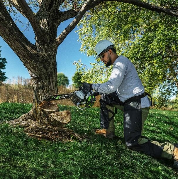 Designed for heavy-duty professional use, the EGO Commercial 20” Chain Saw boasts a 3,500W high-performance brushless motor that delivers power equivalent to a 60cc gas engine. |