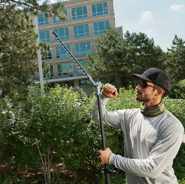 Powered by industry-leading 56V ARC Lithium™ battery technology, the EGO Commercial 21” Articulating Pole Hedge Trimmer boasts a robust 1,000W high-performance brushless motor that delivers instant torque for all-day power equivalent to a 25cc gas engine. Designed for heavy-duty professional use, the hedge trimmer’s commercial-grade construction delivers 5X longer life with precision-engineered UV-resistant composite housing and IPX5-rated weather resistance for working through the worst weather conditions. The hedge trimmer delivers industry-leading durability with an industrial-strength carbon fiber shaft and rail to stand up to job after job while being lightweight and well-balanced for easy handling. Its articulating head rotates 135 degrees across 10 positions for ultimate control and precision when trimming, sculpting, shaping, and cutting back overgrowth. This hedge trimmer features an aluminum gearbox and 21-inch laser-cut dual-action hardened steel blades that are fully serviceable for easy sharpening and customization. Your investment is protected with a two-year commercial use warranty. Maximize uptime and grow your business with the powerful tools and smart tech of EGO Commercial. |