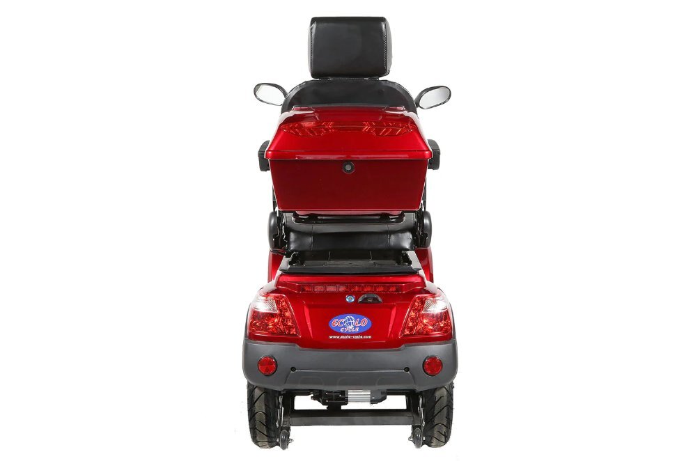 The Ecolo Cycle ET4 Rio is a premium 4-wheel mobility scooter designed to make driving easy and comfortable. With a powerful 60V20Ah Lithium battery, it offers a long range of up to 60km and has a rated lifespan of up to 1000 cycles (approx. 4 years). The rear-wheel drive with differential provides excellent handling and control, while the forward/reverse function makes maneuvering in tight spaces a breeze. The lockable rear box and under-seat storage offer ample secure storage for personal items while out and about. The front and rear suspensions ensure a smooth and comfortable ride over any terrain. The front hydraulic disk brake, combined with the rear drum brakes, provides reliable stopping power when needed. Additionally, the built-in alarm system provides an extra layer of security for peace of mind.