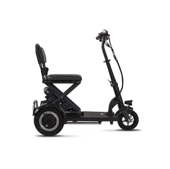 Introducing the Ecolo Cycle ET3 City Mobility Scooter - a super compact and foldable 3-wheeler perfect for both indoor and outdoor use. With a removable 36V10.4 Ah lithium battery, it offers a range of up to 30km on a single charge. Weighing only 23 kg without the battery, this scooter has a load capacity of up to 120 kg. Plus, the rear carrying handle makes it easy to transport and store. The ET3 City is the perfect solution for those who want a reliable and convenient way to get around the city.