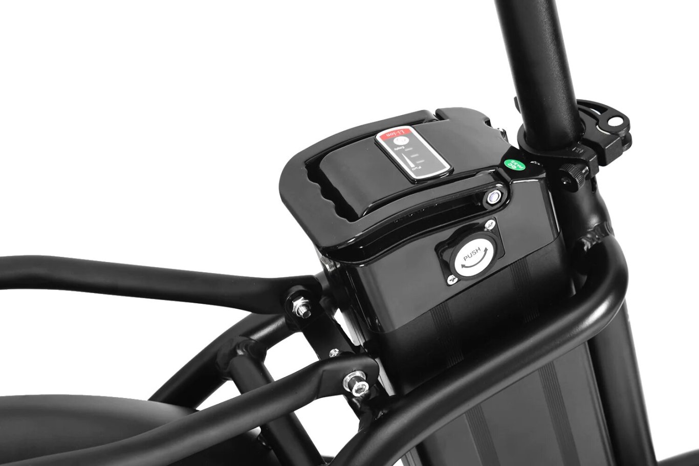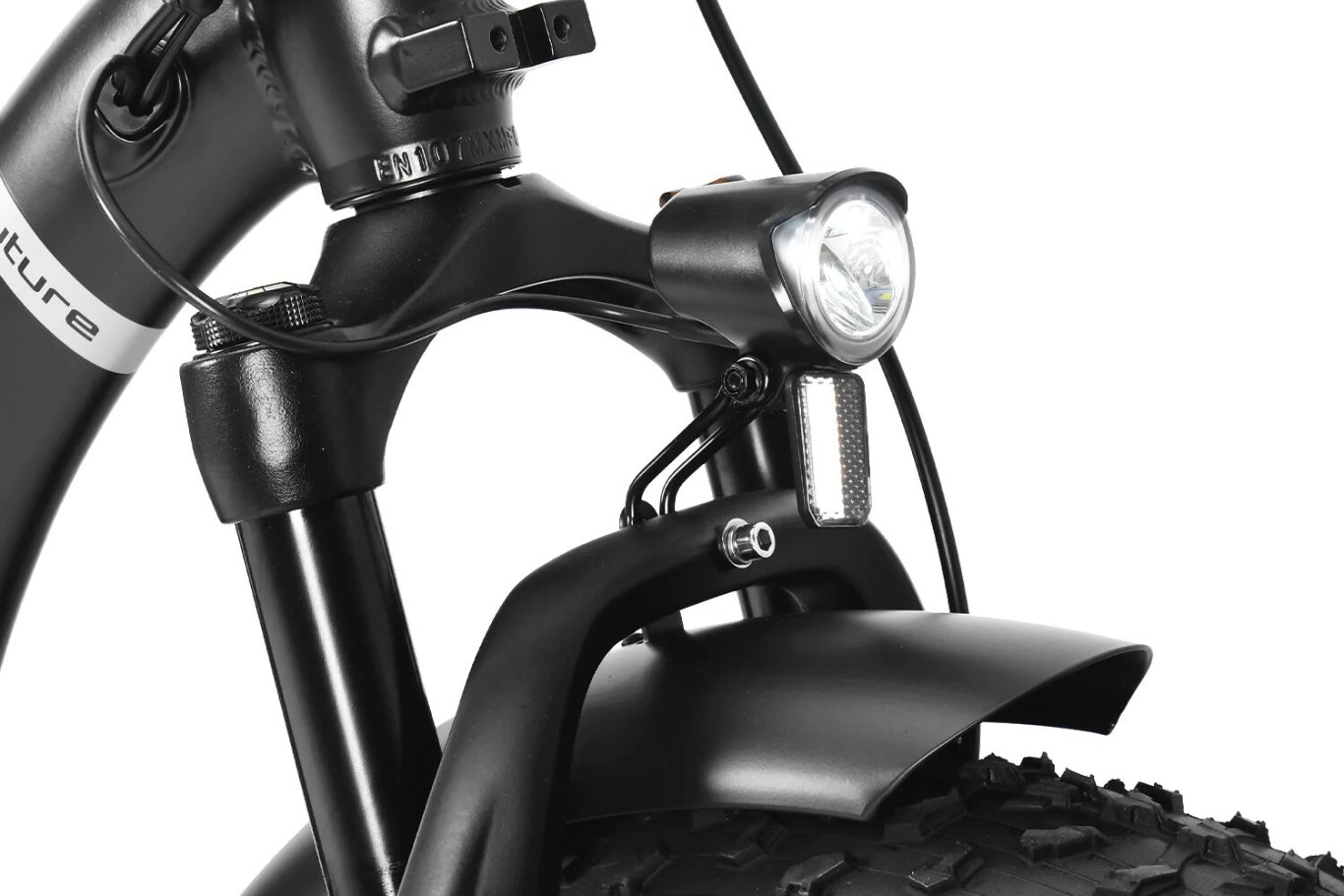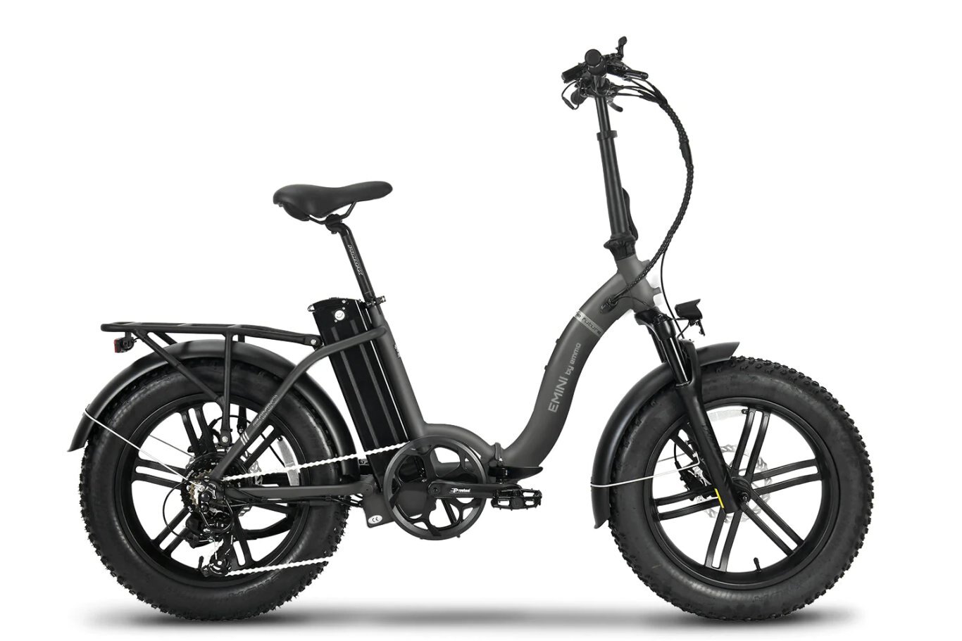 Built with the best quality components, the E-Mini Pro features the foldable frame, 20-inch All Terrain Fat Tire, digital LCD display with Bluetooth connectivity, 48V removable lithium battery, front suspension fork, LED headlight & taillight and more. |