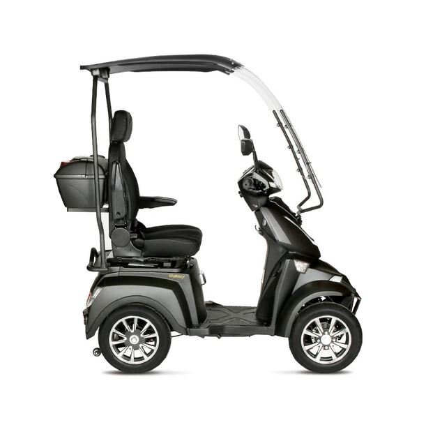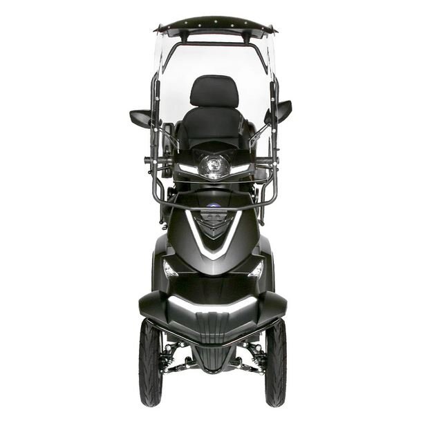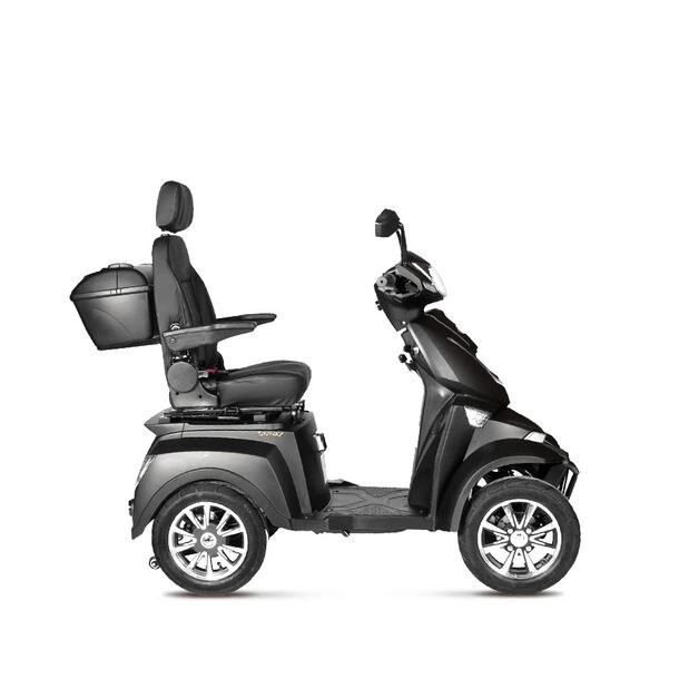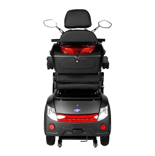 DESCRIPTIONThe Ecolo Cycle ET4 Galaxy is a refined mobility scooter engineered for ultimate convenience and adaptability. With its powerful 60V20Ah SLA battery coupled with a 1000W motor, it ensures consistent performance and longevity. Navigating tricky terrains becomes effortless, thanks to its 25-degree climbing angle. For those who desire a touch of personalization, the ET4 Galaxy offers models with or without a roof, seamlessly integrating function with style. The scooter's design also emphasizes practicality, featuring a lockable rear box and under-seat storage, ensuring your personal items are always within reach and secure. |