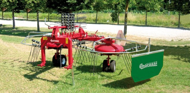IDEAL FOR : small and medium farms. KEY FEATURES : With this versatile rotary rake you can obtain single or double windrows. Useful in small irregular field to move crop to improve access for baler. DESCRIPTION : The DR 420 Tedder is a versatile machine consisting of twin rotors allowing it to be easily adapted to do many different operations. The extra set of arms and tines allow the left hand side head to be operated in both Clockwise and Anticlockwise directions. Particularly suited for movement of crop away from field edge or in shaded area. Right hand rotor moves crop leftwards and is redistributed by the Right rotor. Useful in small irregular field to move crop to improve access for baler. A special guarantee in preserving the harvest valuable nutrients. Our 2 rotor tedder rakes are equipped with a gear that reverses the direction of the left runner. So that the tedder rake presents additional arms with springs for the new rotation. With cardan shaft and protections, inverter and twin wheels. MODELS : DR 420 4R. |