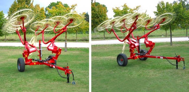 IDEAL FOR : Any type of land, even the hilly ones. KEY FEATURES : A newly designed transport caddy gives a high ground clearance of over 20”, which keeps the transport bar away from cut hay when raking under heavy conditions. DESCRIPTION : Enoagricola Rossi offers the top of the line in affordable 8, 10 and 12 wheel V-rake carts. The Caddy V-rake’s simple design keeps moving parts down to a minimum, eliminating excessive wear points. Maximum flexibility during the haymaking process. Double action hydraulic lift system allows for maximum control on any terrain. Heavy 7 mm tines keep tine breakage to a minimum. Adjustable raking angles allows the ability to regulate windrow width for a variety of baler openings. The 10 Wheel V-rake is designed with a front mounting finger wheel to allow it to quickly swivel out of the way when only an 8 wheel is needed. *Road homologation available upon request. MODELS : RC 8, RC 10, RC 12 Model. |
