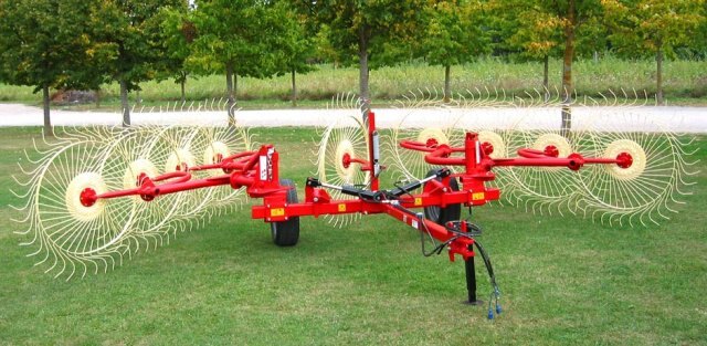 IDEAL FOR : Any type of land, even the hilly ones. KEY FEATURES : A newly designed transport caddy gives a high ground clearance of over 20”, which keeps the transport bar away from cut hay when raking under heavy conditions. DESCRIPTION : Enoagricola Rossi offers the top of the line in affordable 8, 10 and 12 wheel V-rake carts. The Caddy V-rake’s simple design keeps moving parts down to a minimum, eliminating excessive wear points. Maximum flexibility during the haymaking process. Double action hydraulic lift system allows for maximum control on any terrain. Heavy 7 mm tines keep tine breakage to a minimum. Adjustable raking angles allows the ability to regulate windrow width for a variety of baler openings. The 10 Wheel V-rake is designed with a front mounting finger wheel to allow it to quickly swivel out of the way when only an 8 wheel is needed. *Road homologation available upon request. MODELS : RC 8, RC 10, RC 12 Model. |
