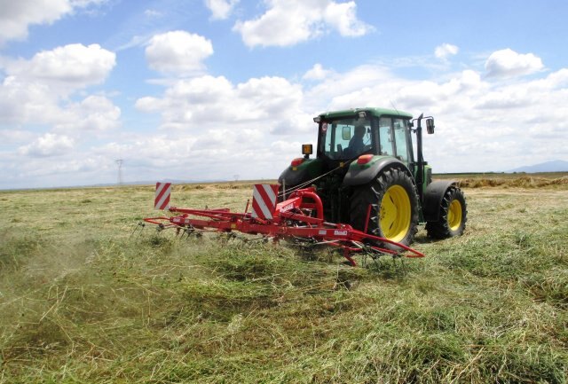 IDEAL FOR : working on all types of terrain, even on hilly ones. KEY FEATURES : The 19 ft. hay tedder features a standard hydraulic tilt, inside tire fenders as well as reinforced tine arms. DESCRIPTION : Enorossi is proud to introduce you our new hay tedders for season 2014-2015. Available in 14, 17 and 19 ft. sizes, our new tedder “VORTEX” comes standard with U-Joint rotor style for better tedding and less problems. Three different models are available and ideal for all types of ground. The 17’ hay tedder can come with optional hydraulic tilt. The 19’ tedder features a standard hydraulic tilt, inside tire fenders as well as reinforced tine arms; durable gearboxes provide reliability at fast tedding speeds. Standard hydraulic opening and closing device. Provided with cardan shaft and slip clutch. The wide range of mounted and pull type hay tedders projected for spreading, aerating and turning all types of forage allow a homogeneous and anticipated drying of the product obtaining a high quality forage. MODELS : Three different models: G4V – 3 Point hitch; G4V-L – Pull Type and 3 Point Hitch; G4V-EL – Pull Type. |