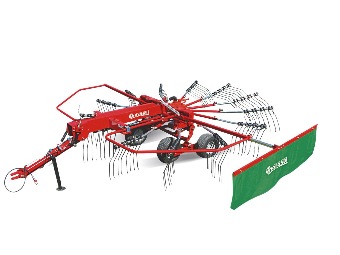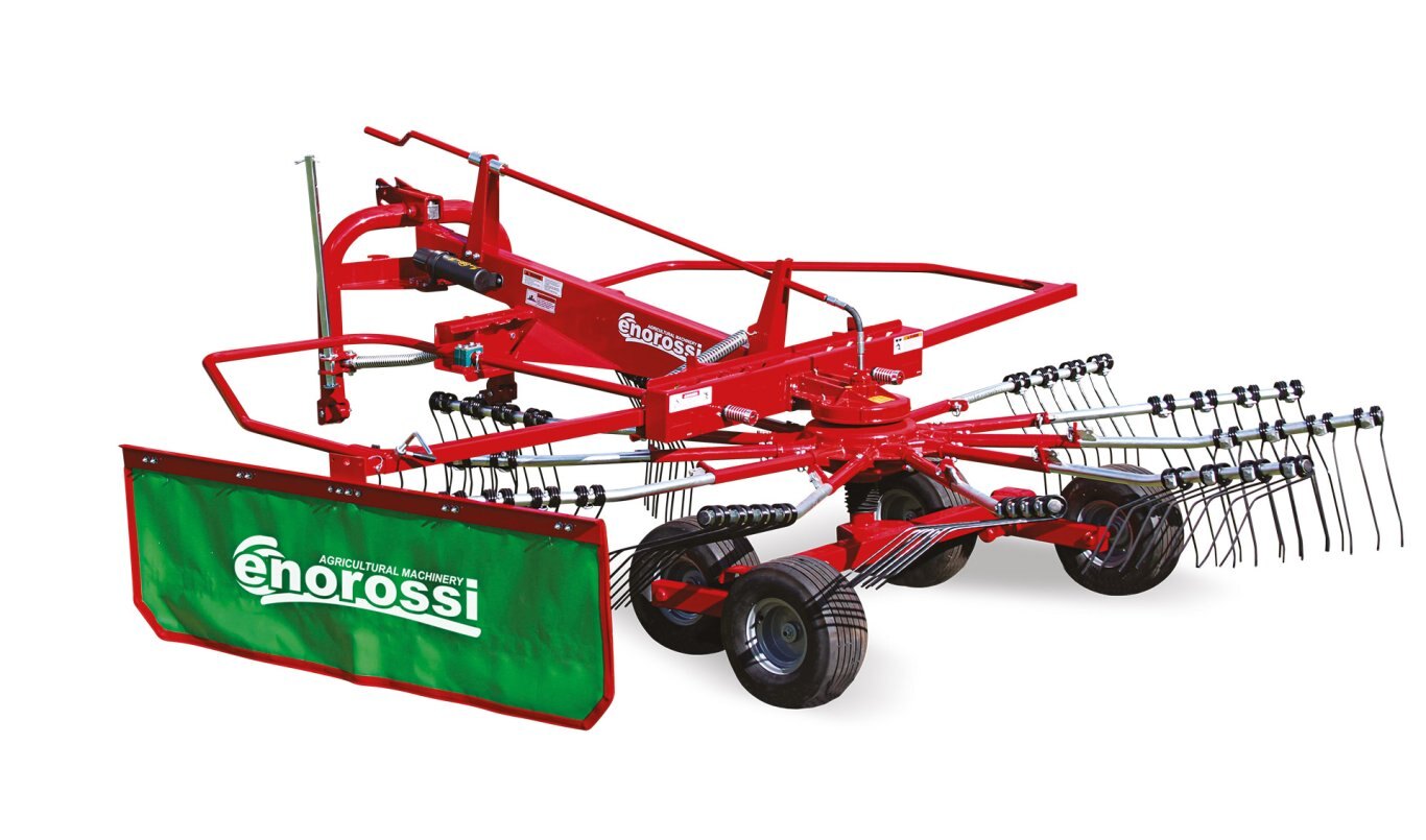 The ENOROSSI rotary rakes are professional machines that guarantee maximum productivity in any kind of ground. They are all fitted with oil bath rotors, guaranteeing reliability to the machine. Thanks to the perfect adaptation to the ground and the soft harvesting work, they preserve the quality of the product.