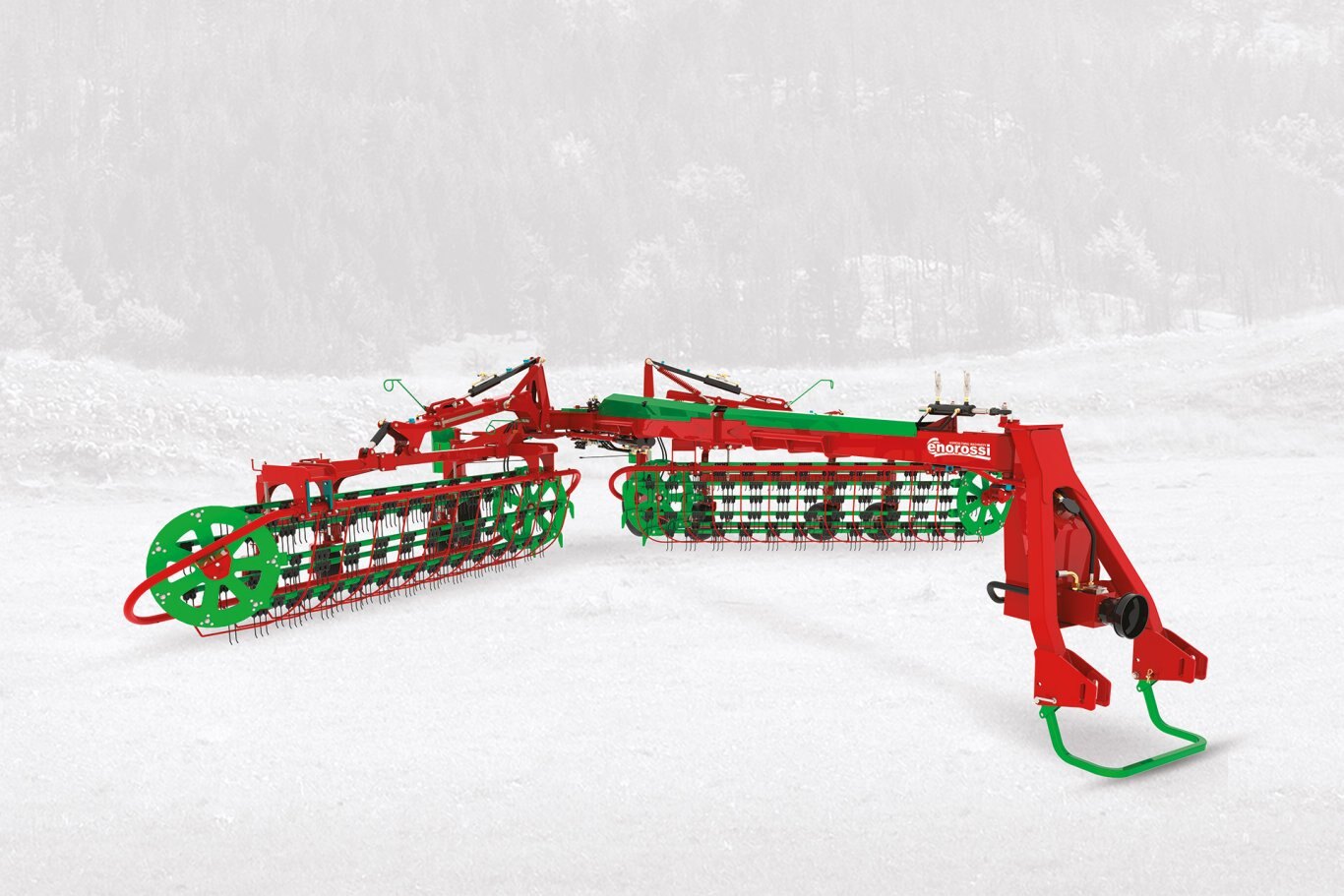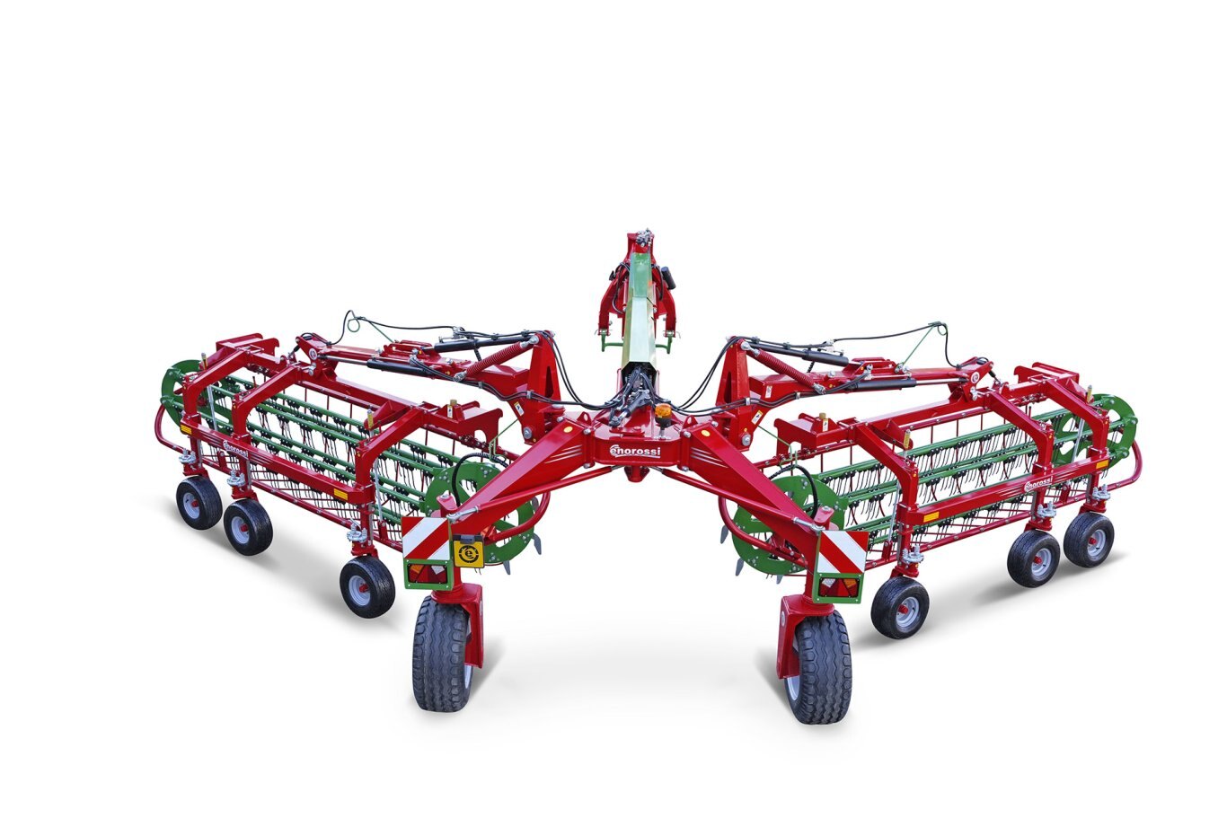Working width adjustment Hydraulic Windrow width adjustment Hydraulic Baskets movements Hydraulic Tines pressure: Spring One side raking Hitch Semitrailed Self-steering system Cardan transmission