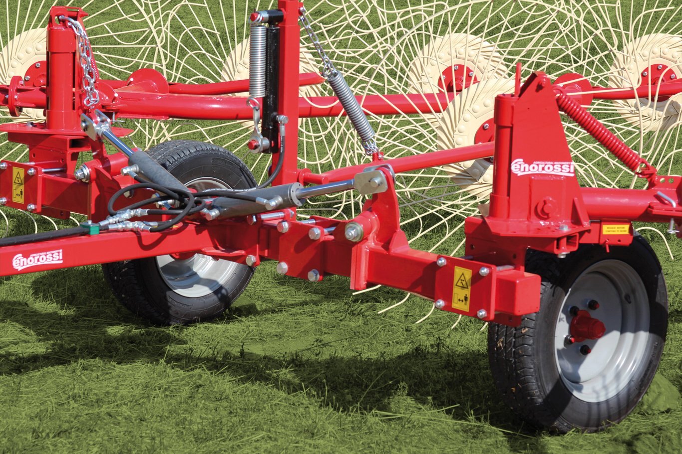 | Enorossi has a wide range of wheel rakes, ideal for any farmer’s need. The rake wheels, with different systems, adapt individually and perfectly to the ground, guaranteeing excellent work especially in difficult field conditions. The versatility of the wheel rakes make them suitable for harvesting grass, straw, corn stalks, sorghum and sugar cane. |