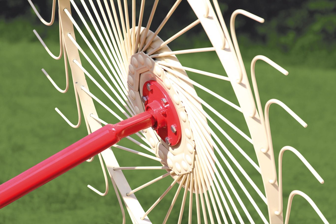 The hub of the rake wheels is grease lubricated, with tapered roller bearings, and sealed. |