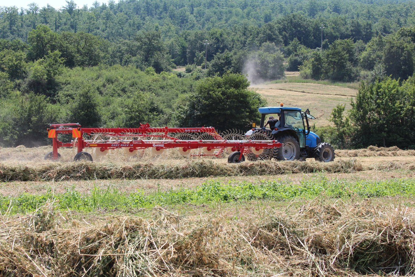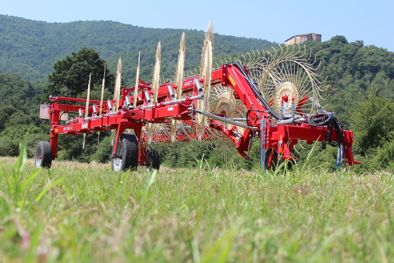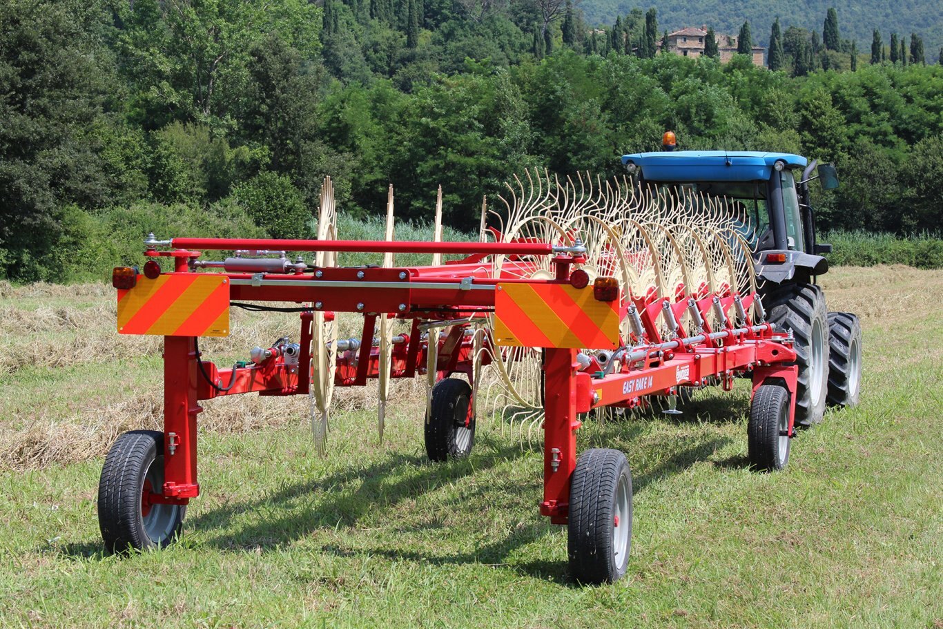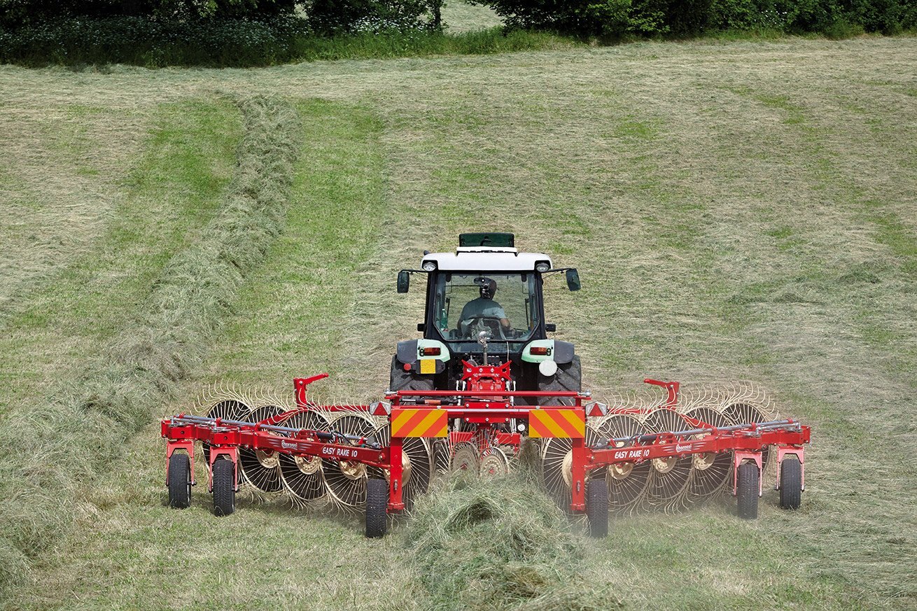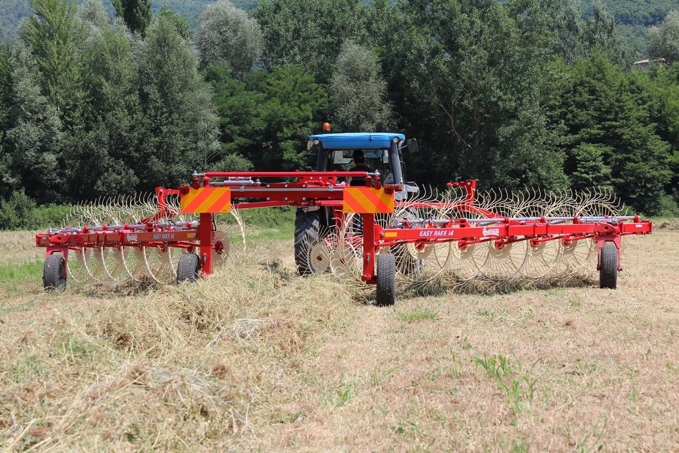 | The Easy Rake is a professional machine, designed for medium-large areas. It adapts to all types of soil and forage conditions. It is available in the trailed (ER) and semi-mounted self-steering (ER ST) version. The windrow width adjustment is mechanical with 3 positions. |