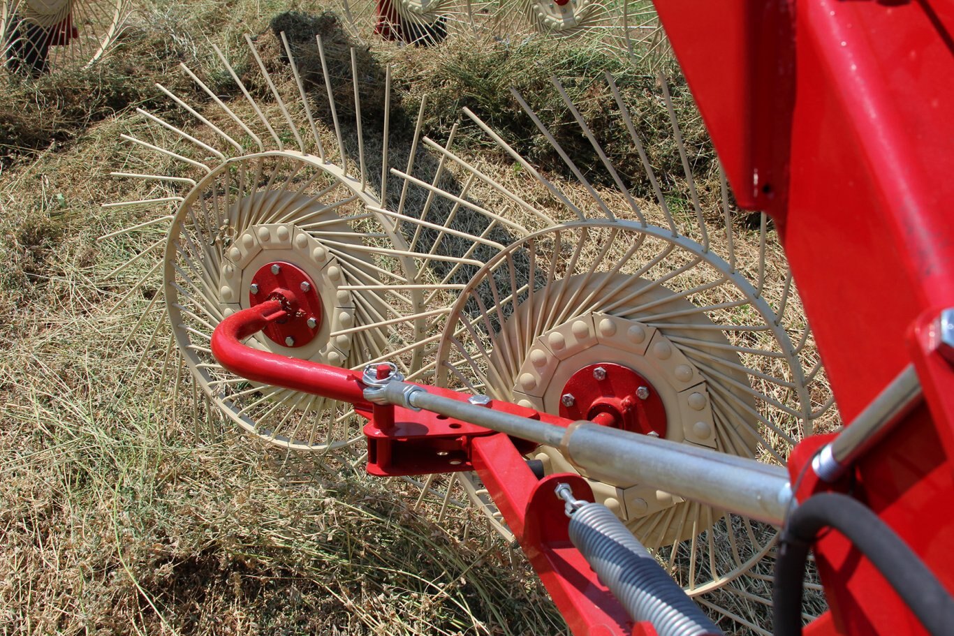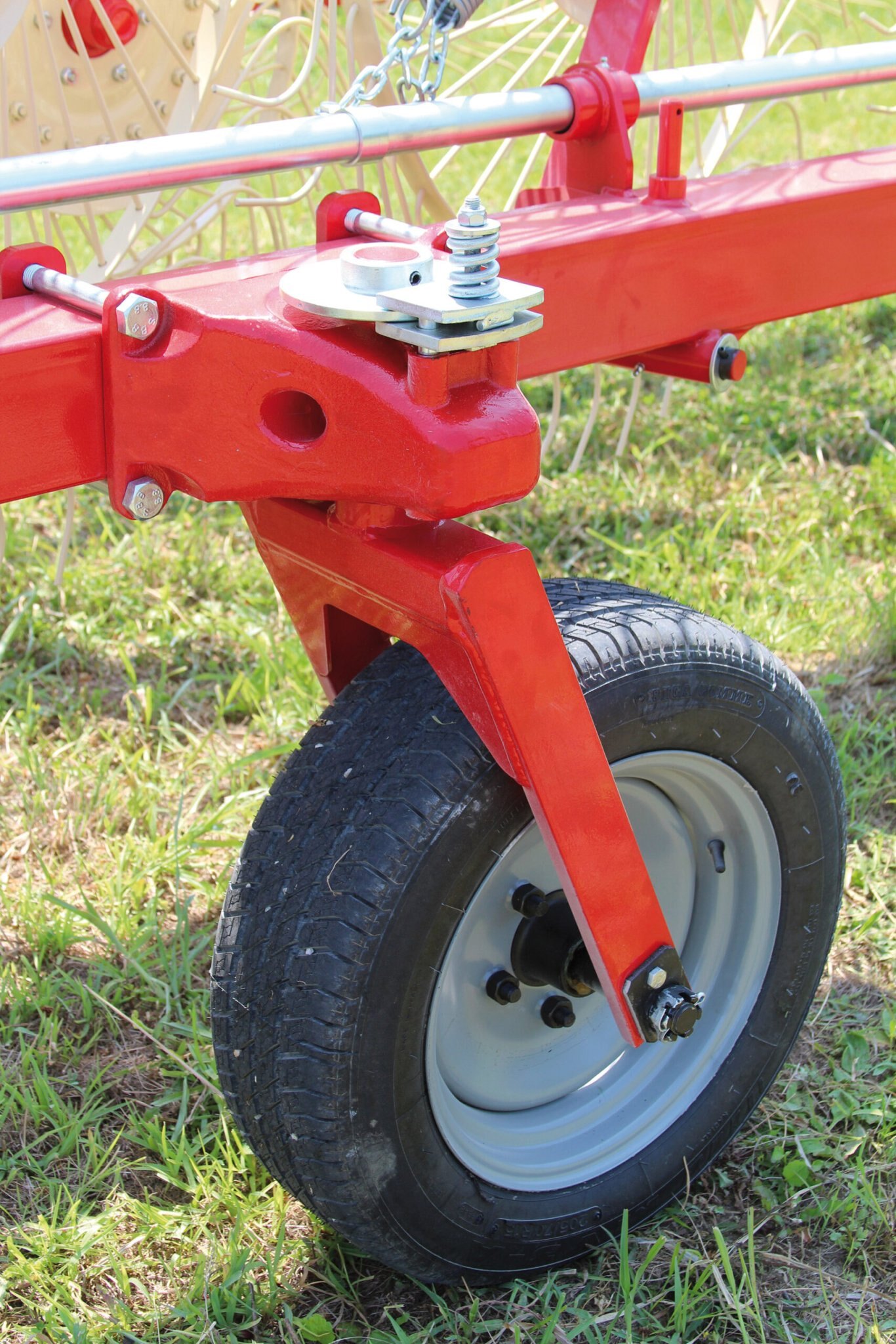 The adaptation of the rake wheels to the ground is very important, especially in conditions of disconnected terrain, therefore each model of rake has its own adjustment system. |