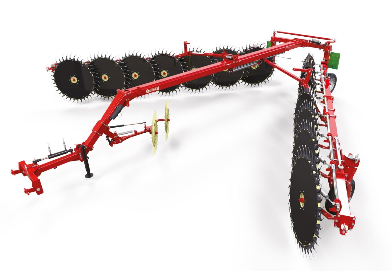 | Enorossi has a wide range of wheel rakes, ideal for any farmer’s need. The rake wheels, with different systems, adapt individually and perfectly to the ground, guaranteeing excellent work especially in difficult field conditions. The versatility of the wheel rakes make them suitable for harvesting grass, straw, corn stalks, sorghum and sugar cane. |