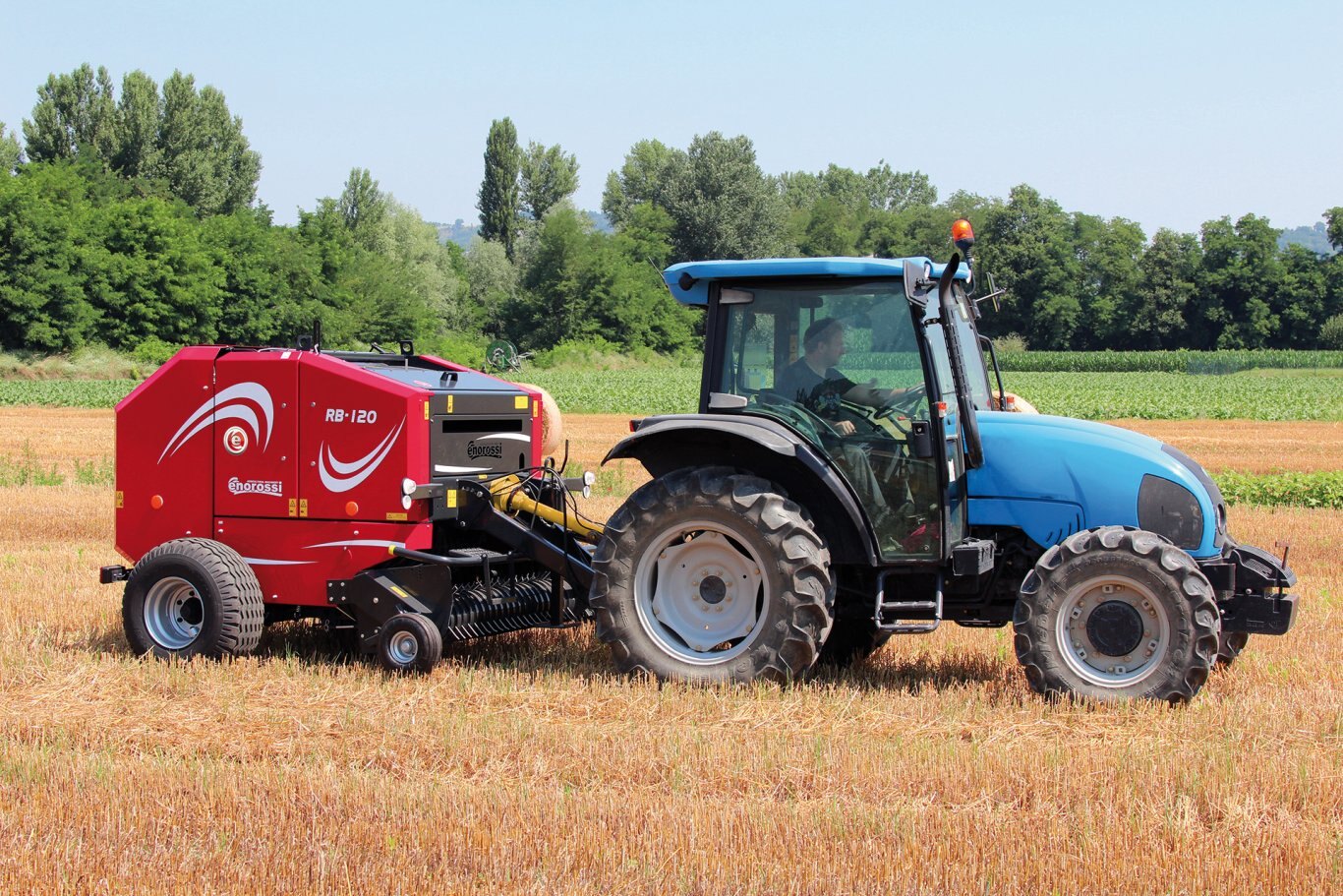 | Fixed chamber RB 120 round baler with 16 steel rollers, specifically designed for all working conditions, both for wet silage and dry hay. RB 120 model is provided with simple feeding system, RB 120 Rotor model has a rotor with lateral augers that help the penetration of the product in the chamber, RB 120 ROTORCUT model is provided with rotor feeding system and 13 blades for product cutting. Available with twine and net wrapping system. Standard automatic lubricating kit in all versions. |