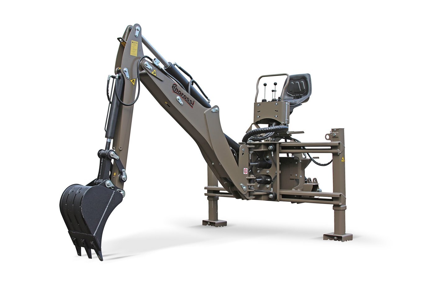 The Enorossi backhoes are sturdy and with an ergonomic design that optimizes visibility for the operator during work phases. The compact size helps road transport and simplifies maneuvering operations during work. Made of high quality steel they can be used for both agricultural and construction works, guaranteeing years of excellent performance even in difficult and exhausting working conditions. All the components, including the hydraulic ones, are produced in Italy and this ensures maximum reliability in terms of productivity and durability.