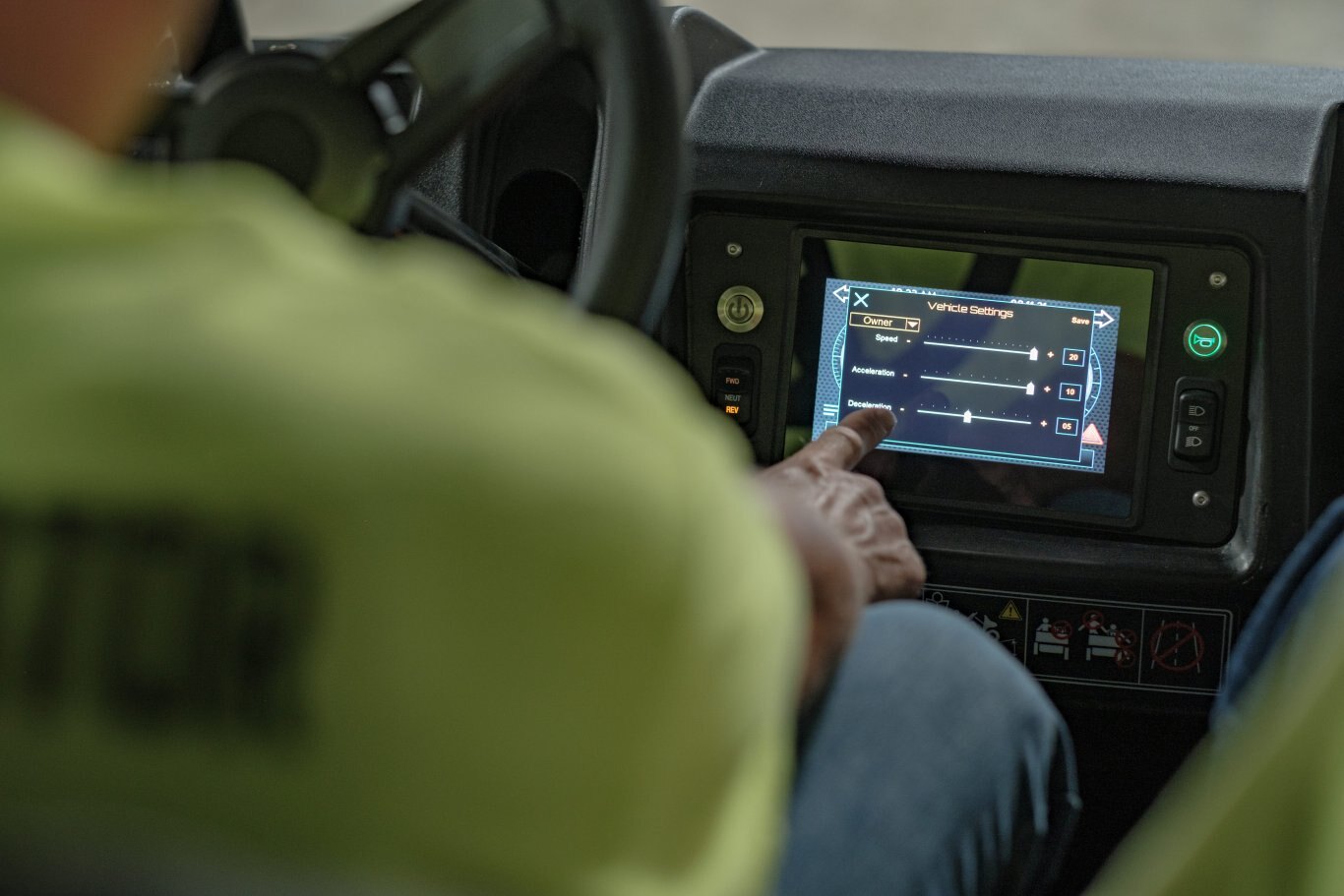 The 7" display shows battery life, speed, and also allows for custom settings.