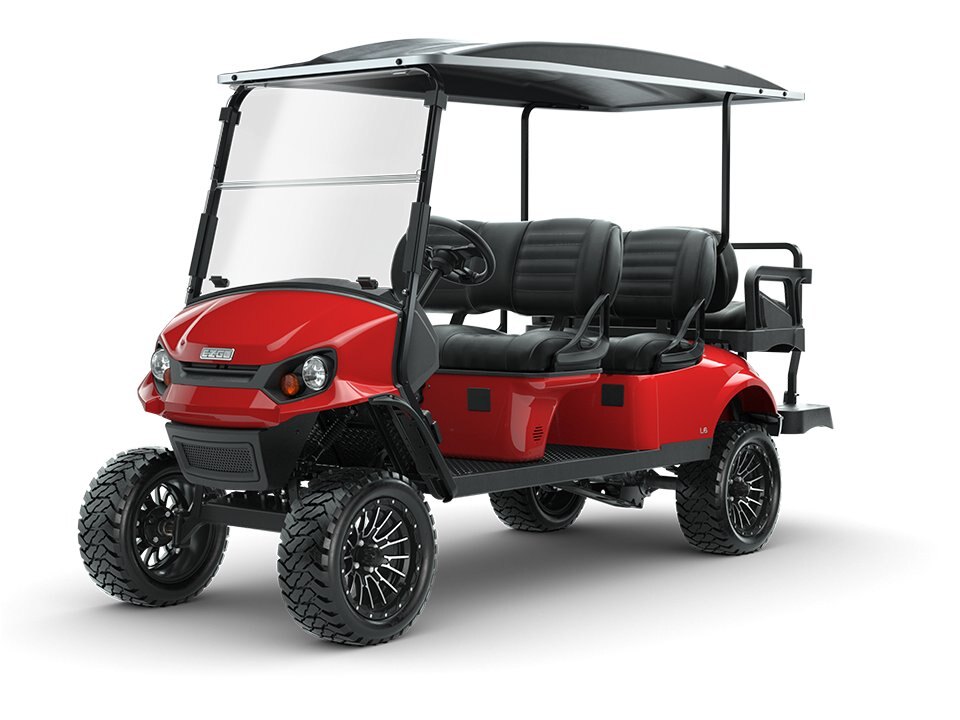 Elevate your golf cart with the standard lifted suspension.Ezgo EXPRESS L6 72V Flame Red
