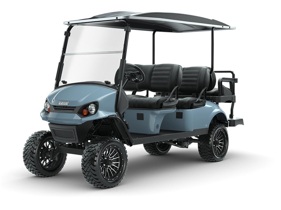 Elevate your golf cart with the standard lifted suspension.Ezgo EXPRESS L6 ELiTE LiThium Ocean Grey