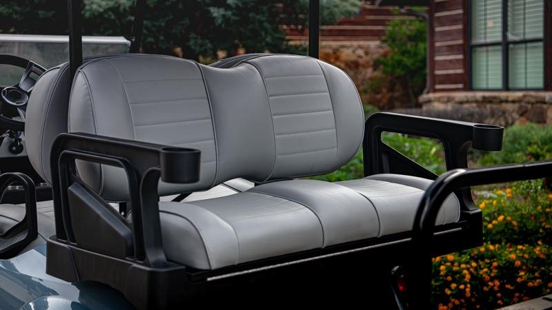 NEW REAR SEAT WITH ENCLOSED STORAGEComfortable ride for 4 passengers with a rear-facing golf cart seat featuring convenient enclosed storage for all of your adventures.