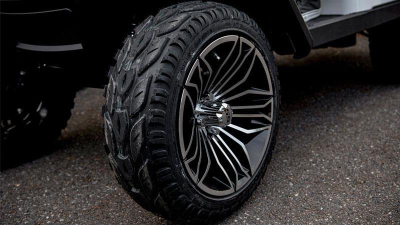 NEW TIRE AND WHEEL OPTIONSPremium tires and wheels improve ride quality and give another level of customization to your 4 passenger golf cart.