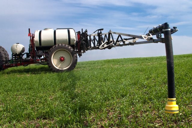 TeeJet 744 fixed rate controller and TeeJet electric boom control ball valves, 3-bank system; or Raven 450 and Banjo electric boom control ball valves, 3-bank system.