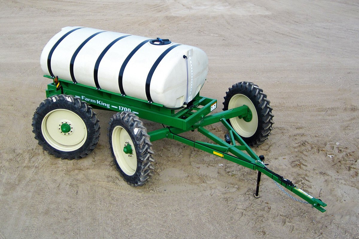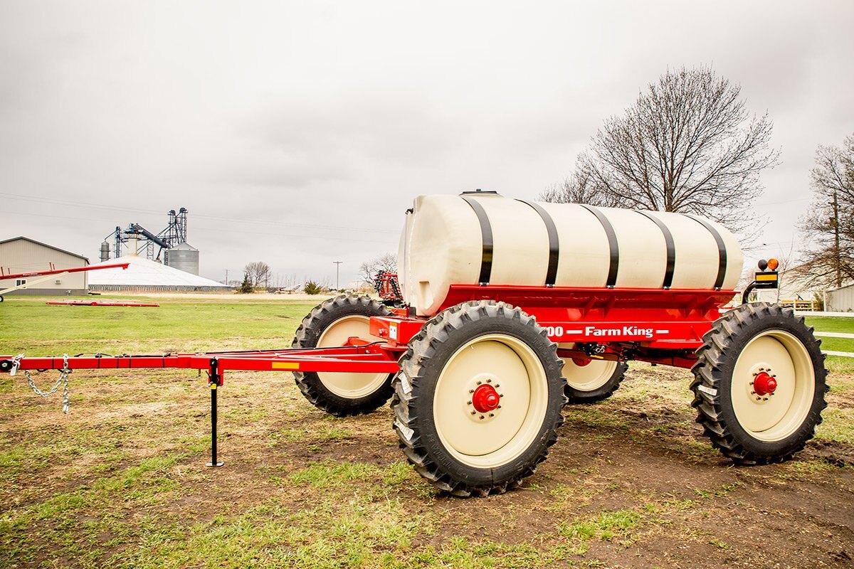 | MINIMAL SOIL COMPACTION AND TIGHT TURNING RADIUS ARE JUST SOME OF THE BENEFITS THAT COME FROM OPERATING THE FARM KING LIQUID SUPPLY TRAILER. Use this four-wheel steer trailer to supply your planter, field cultivator, strip till, sprayer, and fertilizer applicator. |